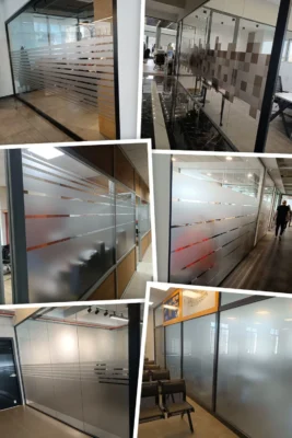 Ofis bölmelerinde kullanılan kumlama filmleri, mahremiyeti sağlarken mekanın aydınlık ve ferah kalmasına olanak tanır.